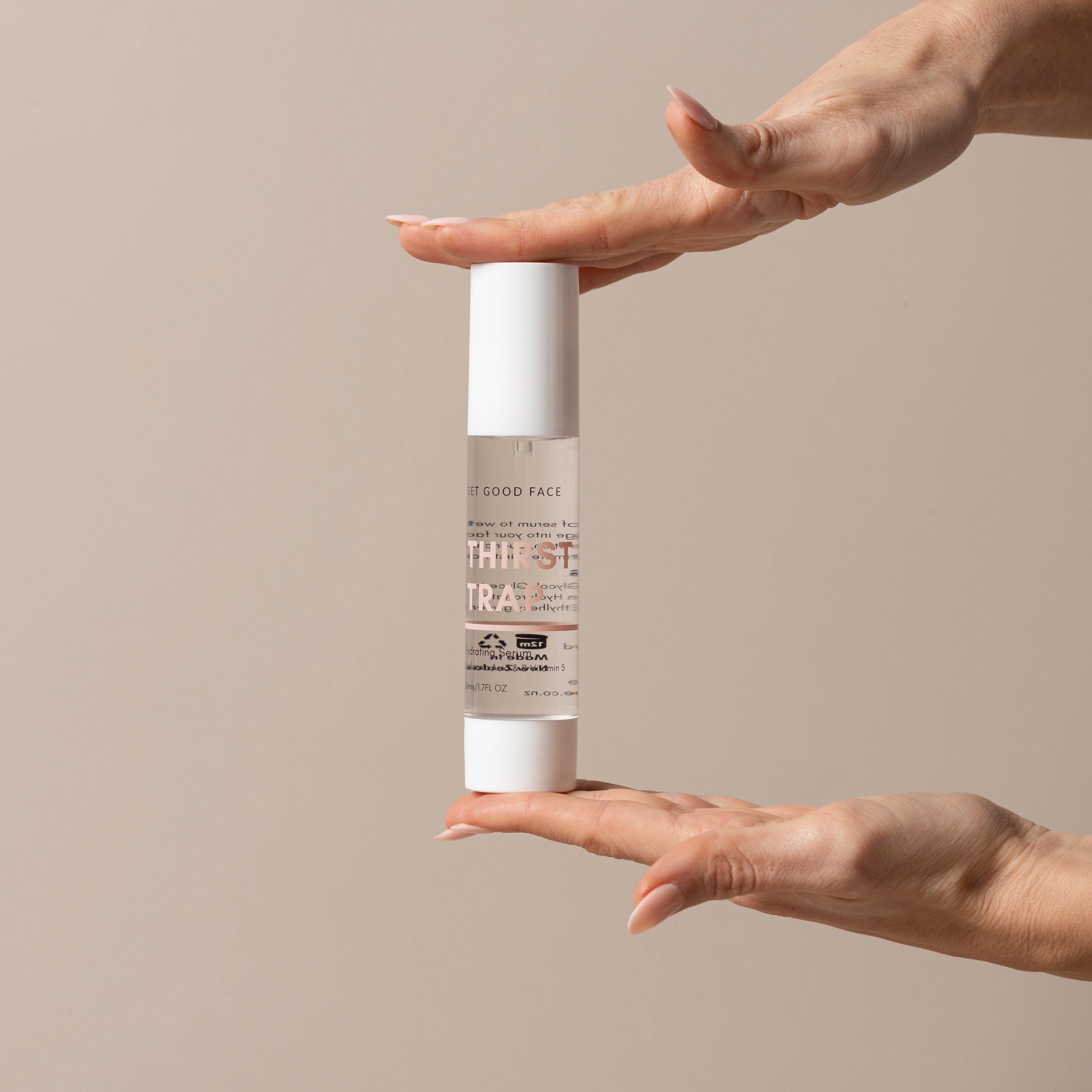 Hydrate and plump your skin with our Thirst Trap - a Hyaluronic Acid + Vitamin B5, then seal in lasting moisture with our Lock It In - a nourishing oil blend of Jojoba, Rosehip, and Frankincense for a strong, healthy complexion.